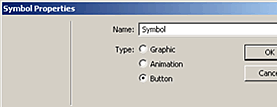 2.Fireworks tutorialOtvorit će se prozor Symbol Properties. Označite Button i kliknite na OK. |
